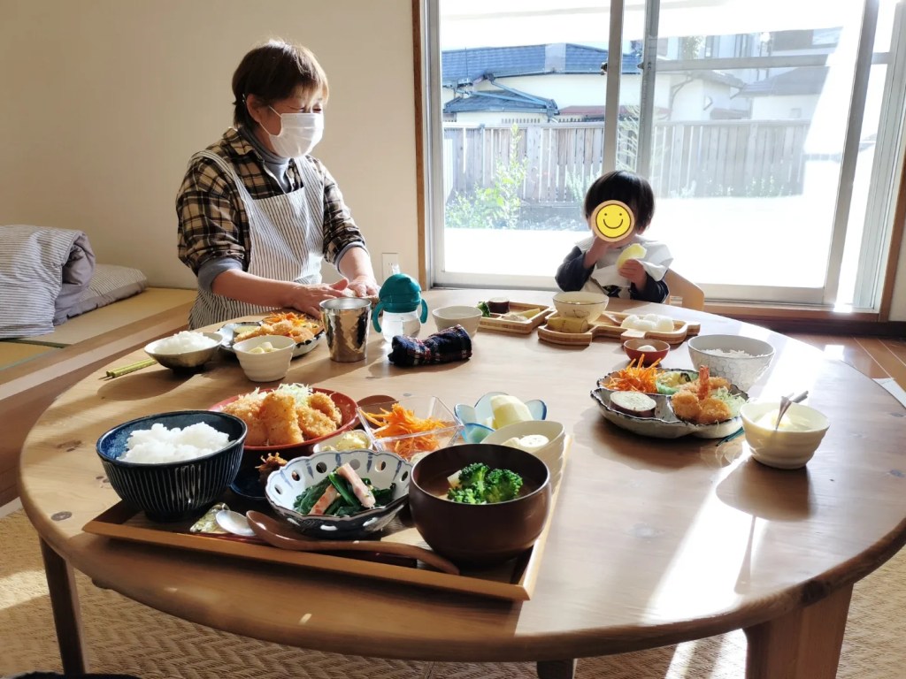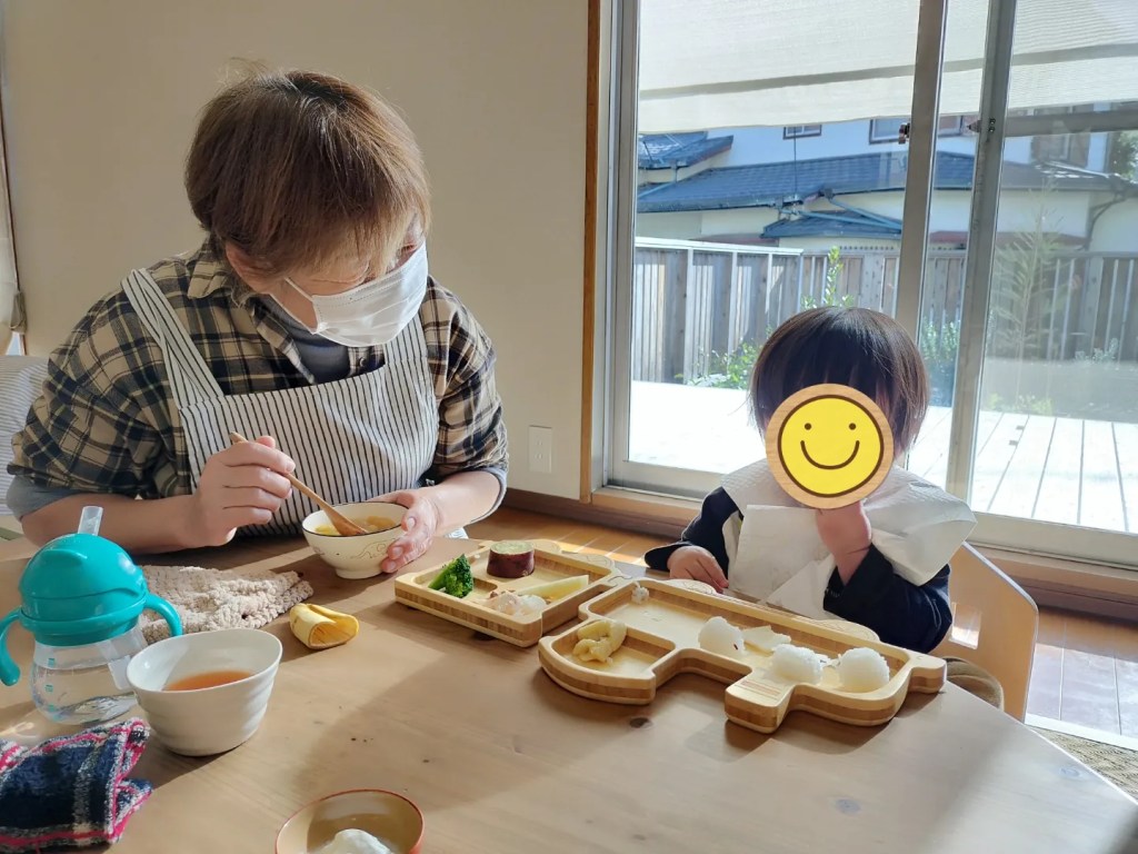 乳房ケア➡セルフケア体操➡お昼ごはん(みんなでテーブルを囲むと楽しそうにパクパク食べてくれるぼくちゃんでした✨)➡お子さんと一緒にウッドデッキで遊ぶ➡お子さんと離れてお昼寝
