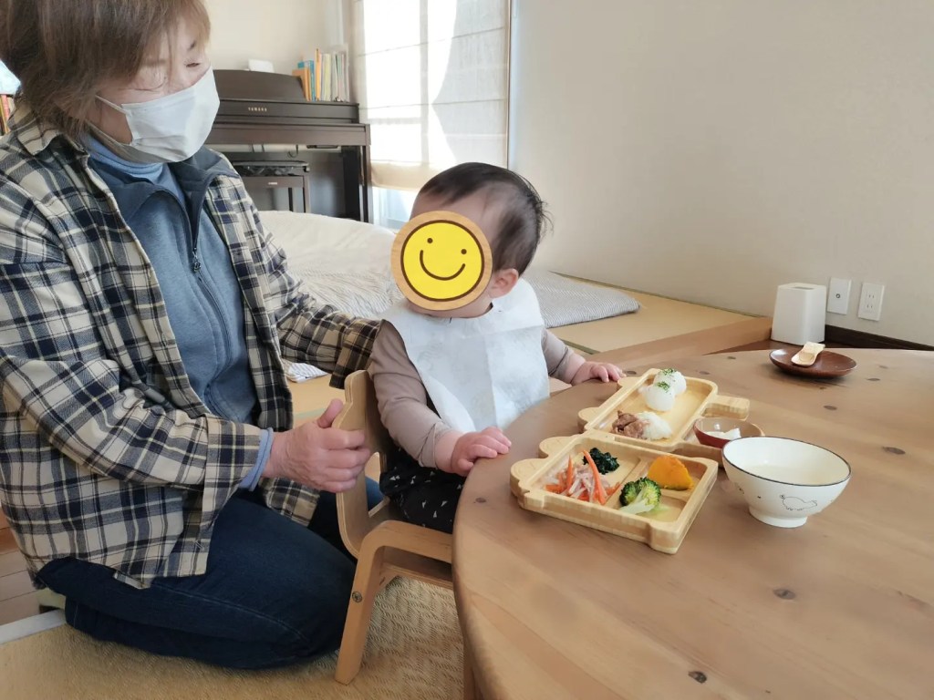 夜何回も何回も赤ちゃん起きていて朝方ようやく眠れたということで、お迎えに行った時は起きたばかり、朝ごはんもまだ、とのことでしたのでこちらに来てすぐ早めのお昼ご飯。赤ちゃんとお母さん、向かい合ってゆっくりご飯を食べて、赤ちゃんが場所と私たちに慣れてくれたところでそっと離れてお母さんは少しお昼寝しました。
