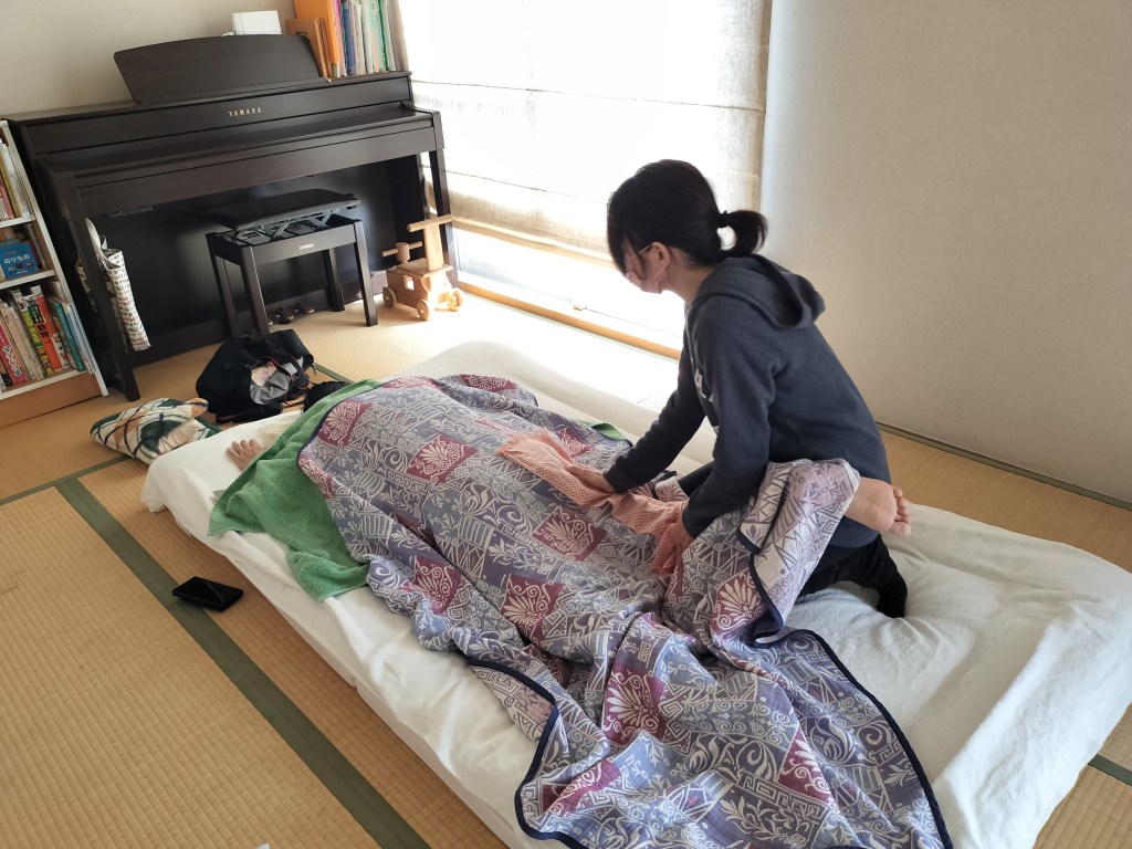 乳房ケア➡沐浴➡授乳➡お昼寝➡お昼ごはん➡お昼寝➡授乳➡整体(※)➡お昼寝