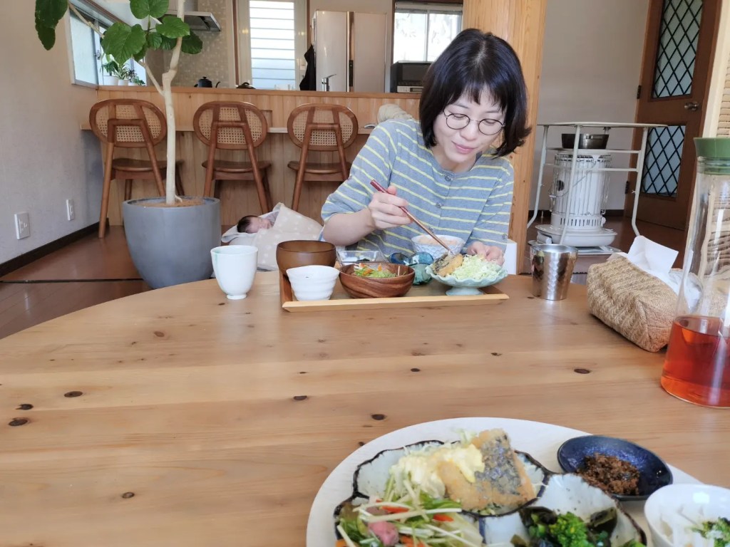 お昼ごはん中、赤ちゃんはスヤスヤお昼寝中だったので、私も一緒におしゃべりしながらいただきました