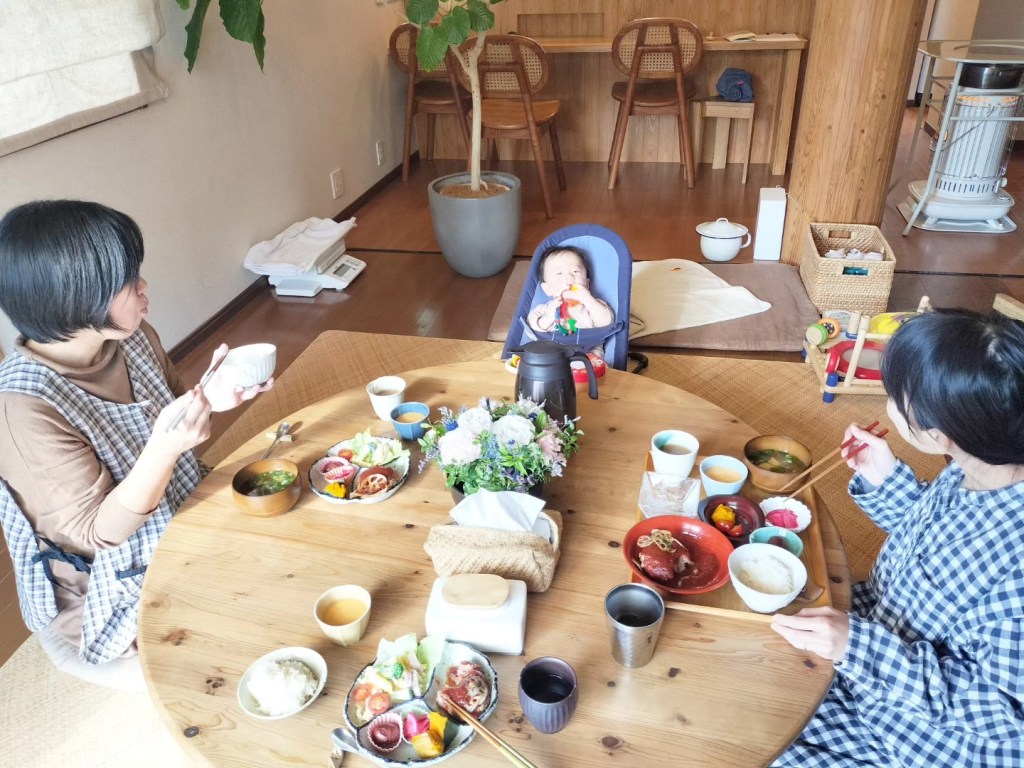 授乳➡乳房ケア➡お昼寝(その間に赤ちゃんは離乳食を食べてお昼寝しました)➡お昼ごはん➡授乳➡整体(※)(赤ちゃんはお散歩へ)➡おやつ