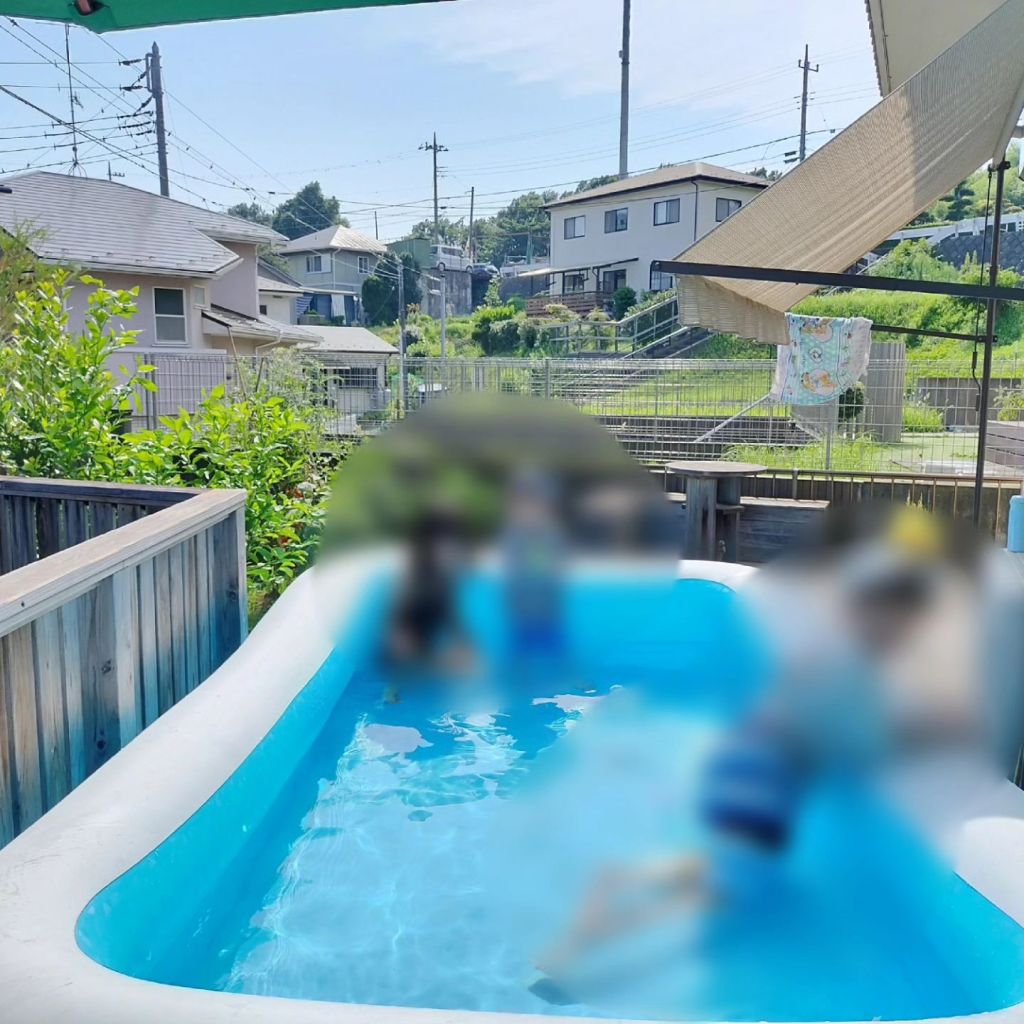 上の子たちはプールに行きたいって言うけど、赤ちゃん連れて一人でプール連れて行くなんて難題すぎるし…